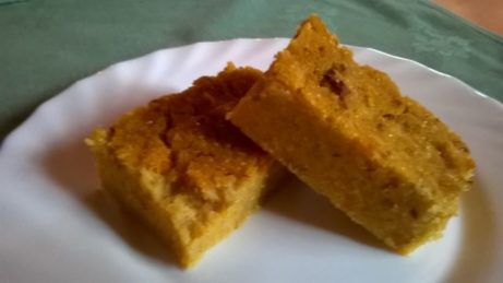 Hrušky nastrouháme na hrubo, předem uvaříme dýni a rozmačkáme ji vidličkou. Smícháme hrušky, uvařenou dýni, citronovou kůru (bio) kandovanou, maizenu, osladíme rýžovým sirupem a zahustíme kukuřičnou moukou a kukuřičnou krupicí, osolíme špetkou soli. Vypracujeme vláčnou směs, kterou rozložíme na pekáč. Pečeme v předem středně vyhřáté troubě přibližně 45 min.