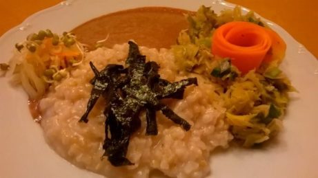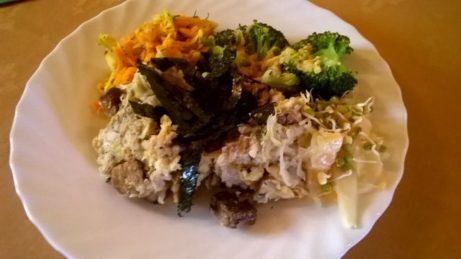 Rýži natural jsme vařili s čajem bancha a několika lžícemi umeocta, ke konci jsme přidali trochu sezamového oleje pro zjemnění chuti. Nutella byla vyrobena rozmixováním namočených lískových oříšků spolu s kakaem, rýžovým sirupem a trochou uvařeného obilí (hutnější konzistence). Teplá zelenina: na jemno nakrájíme kapustu a pórek a dusíme cca 10 min na troše oleje s vodou do měkka. Na závěr dušení vmícháme do zeleninové směsi pokrájenou jarní...